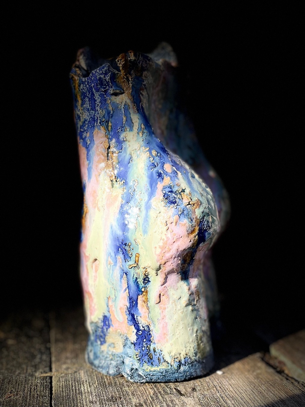 In mijn werk staat vooral de vrouw centraal. Met specifiek het thema: de goden van de Griekse Mythologie tot nu. Medusa en Venus, hun verhalen zijn nog steeds van deze tijd. Denk maar aan Me Too en tegenwoordig ook veel in het nieuws, femicide. Een nieuw thema is naar aanleiding van de Irissen van Van Gogh. Na het zien van zijn allerlaatst werk, was ik diep onder de indruk en probeer dit in de klei vast te leggen. De werken worden eerst biscuit gebakken, vervolgens geglazuurd en afgebakken op 1160 tot 1260 graden.